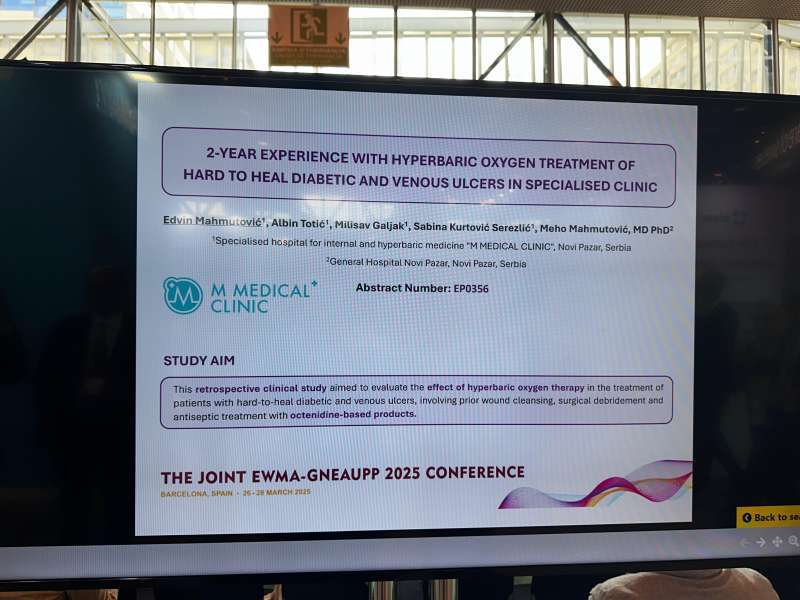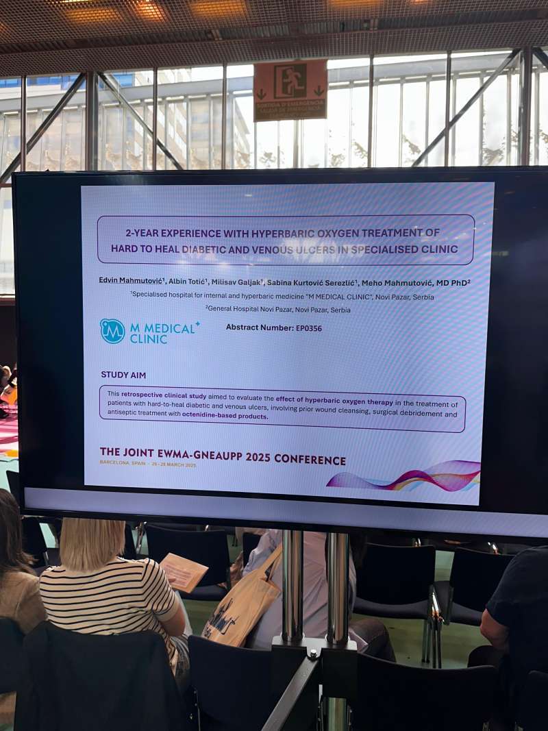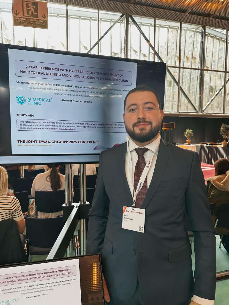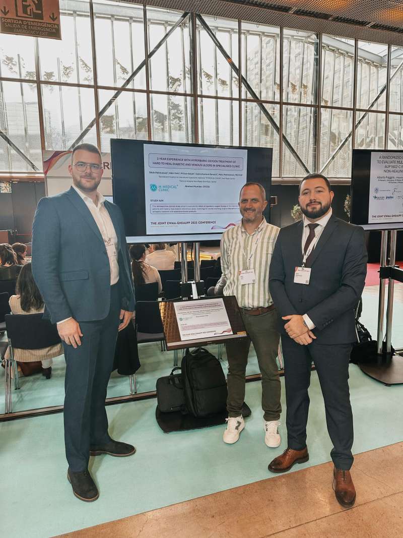 Na 35. konferenciji Evropskog udruženja za lečenje rana, koja se održava u Barseloni, lekari M Medical klinike, dr Edvin Mahmutović i dr Albin Totić održali su zapaženo predavanje i predstavili rezultate rada ove renomirane medicinske ustanove.