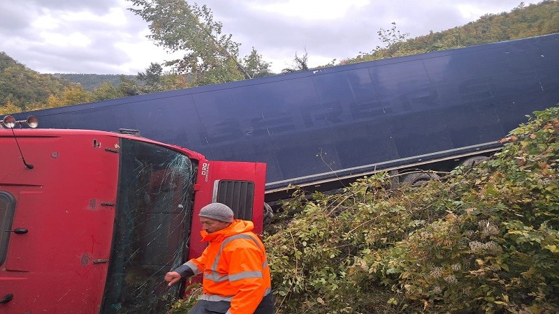 Brzom reakcijom radnika preduzeća Novi Pazar-put danas je sprečena moguća tragedija, kada su na putu zatekli šleper koji je sleteo s puta i u njemu vozača koji je više od 12 sati proveo zarobljen u kabini.