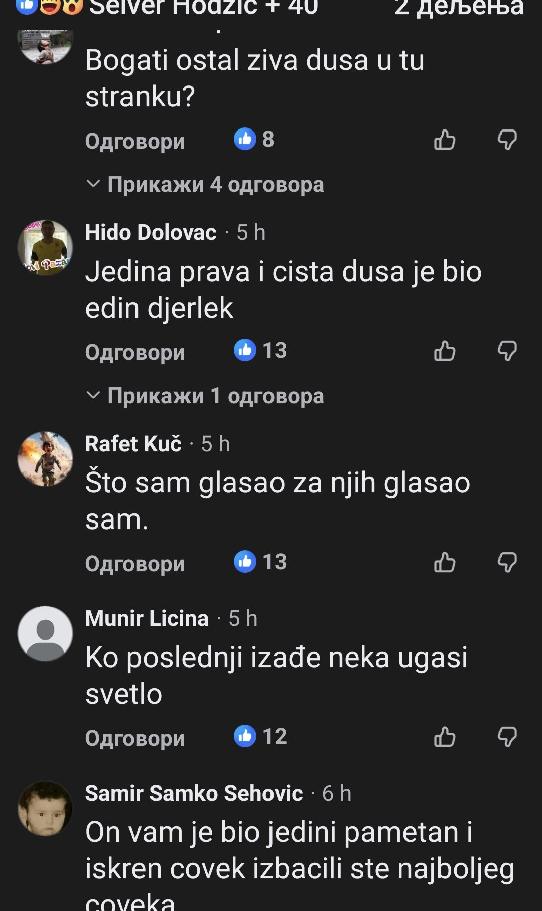 U porukama i komentarima podrške Đerleku poručuju da “ta stranka(SPP) nije više što je bila”, “treba da smene sebe”, da je “smenjena jedina svetla tačka posle muftijinog preseljenja”, te da je “teško slušat manje školovanog od sebe”