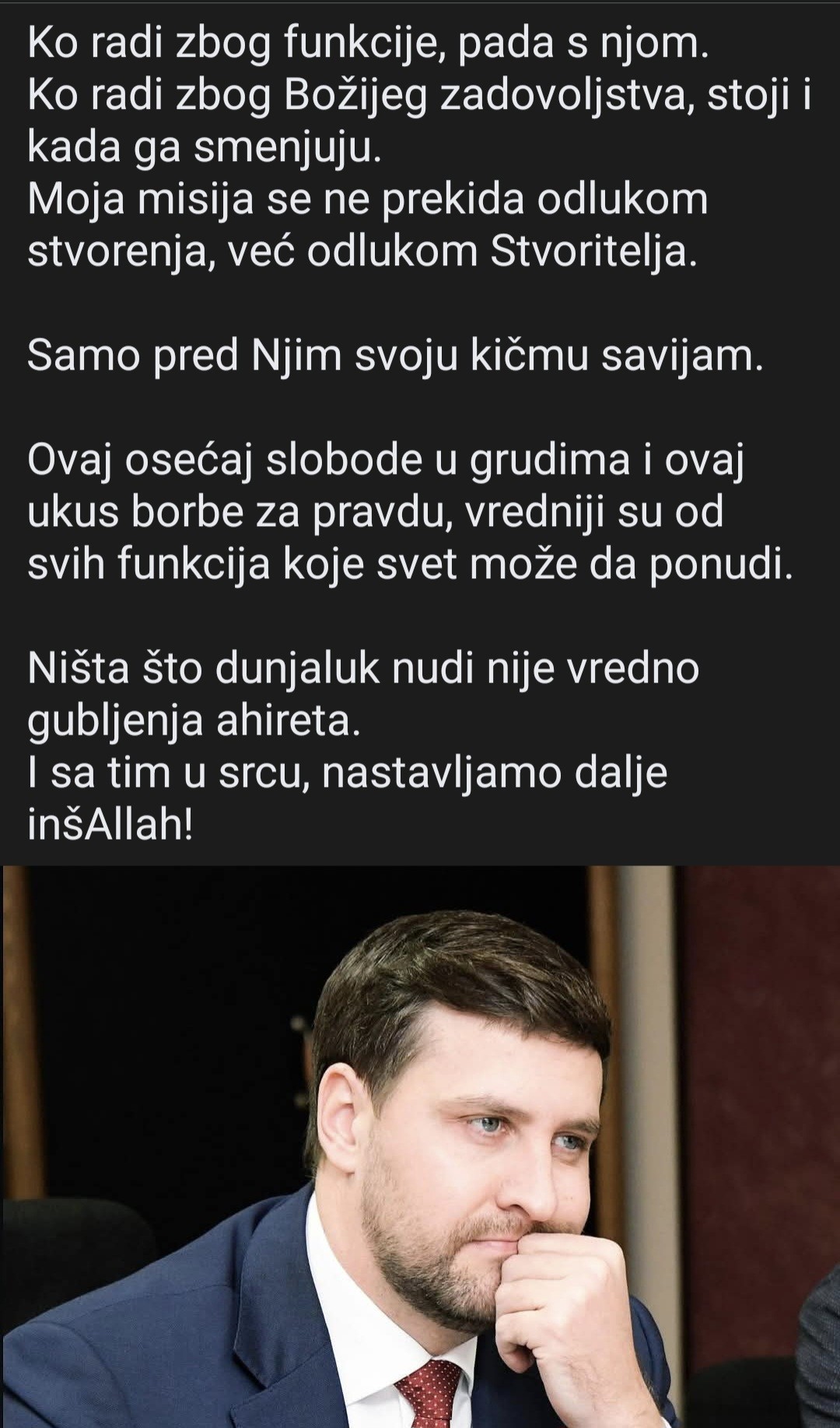 Nakon smene iz vrha Edin Đerlek na svom Facebook profilu podelio je poruku: