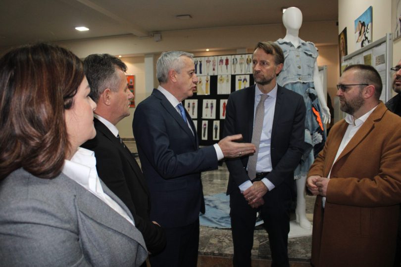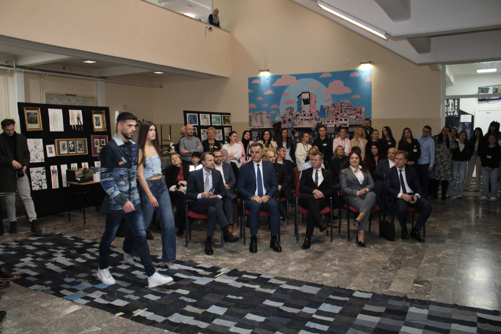 Delegacija EU obišla je specijalizovane učionice i radionice u kojima učenici stvaraju modne komade, tekstilne proizvode i inovativne materijale, dok su domaćini – direktor škole i stručno-pedagoško osoblje – predstavili rad škole i način na koji u nastavu integrišu savremene tehnologije i održive prakse.