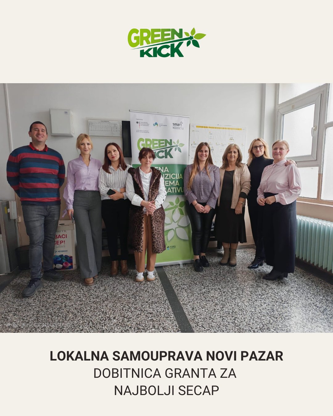 U okviru projekta Green Kick Grad Novi Pazar osvojio je grant u vrednosti od 6.000 evra za najuspešniji Akcioni plan energetski održivog razvoja i klimatskih promena (SECAP). OsimNovog Pazara, još pet lokalnih samouprava — Smederevska Palanka, Vrnjačka Banja, Kragujevac, Petrovac na Mlavi i Šid — učestvovalo je u intenzivnim treninzima i radnim sastancima posvećenim razvoju mera za smanjenje emisija gasova sa efektom staklene bašte.