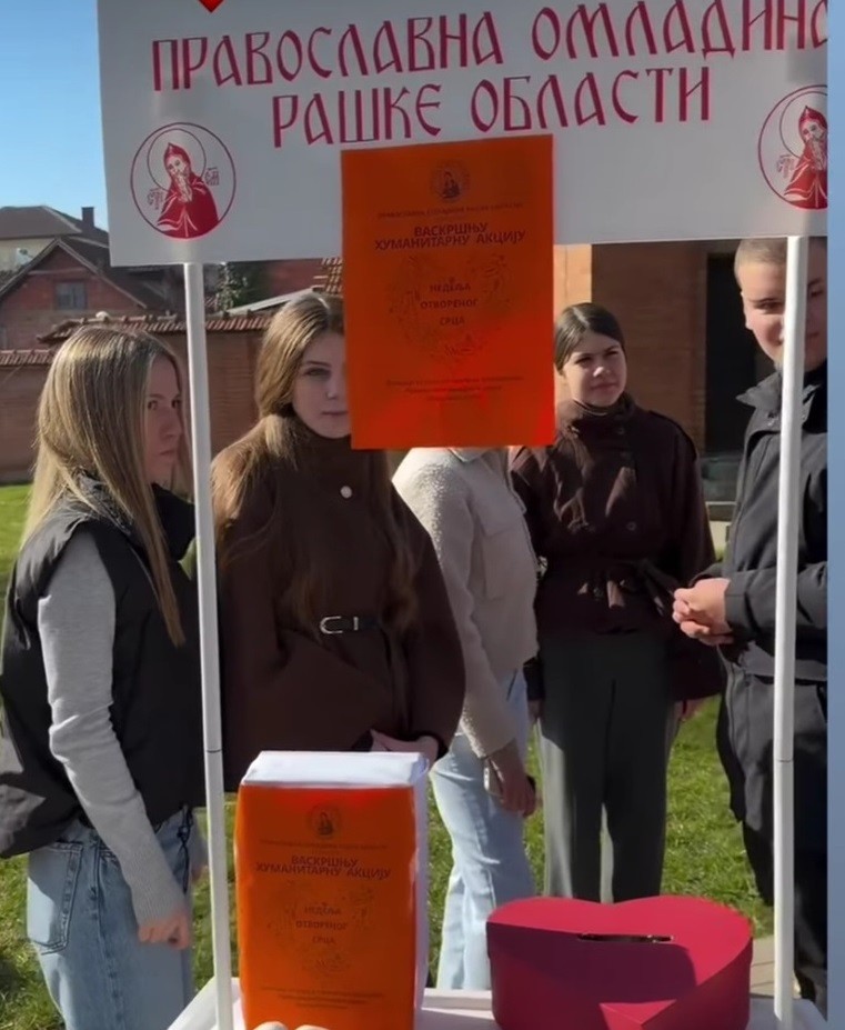 Pravoslavna omladina Raške oblasti organizovala je Vaskršnju humanitarnu akciju “Nedelja otvorenog srca” u porti crkve Svetog Nikole. Nakon liturgije i pričešća svi vernici su mogli ostaviti humanitarni prilog i poslužiti se medenjacima. Prikupljena sredstva sa ovog humanitarnog bazara koji će trajati tokom celog Vaskršnjeg posta biće usmerena na pomoć onima kojima je najpotrebnija.